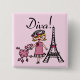 Diva T-shirts, bodysuits, mugs, bags, cards, stickers, key chains, pillows, wall clocks, and much more with a cute diva design featuring a blonde haired girl in a hat and pink dress with her pink poodle near the Eiffel Tower!