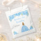 This birthday party favour bag features faux glitter bright blue floral flowers and a beautiful princess with blonde hair and an elegant dress. This is perfect for a birthday party.