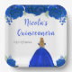 This Quinceanera plate features faux glitter royal blue floral flowers and a beautiful princess with blonde hair and an elegant dress. This is perfect for a Quinceanera birthday party.
