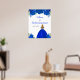 This Quinceanera welcome poster features faux glitter royal blue floral flowers and a beautiful princess with blonde hair and an elegant dress. This is perfect for a Quinceanera birthday party.
