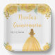 Blonde Hair Princess Gold Floral Quinceanera Paper Plate