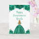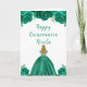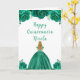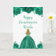 This Quinceanera birthday card features faux glitter green floral flowers and a beautiful princess with blonde hair and an elegant dress. This is perfect for a Quinceanera birthday party.
