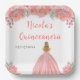 Blonde Hair Princess Pink Floral Quinceanera Paper Plate