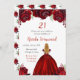 This birthday party invitation features faux glitter red floral flowers and a beautiful princess with blonde hair and an elegant dress. This is perfect for a birthday party.