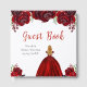 This sweet sixteen guest book features faux glitter red floral flowers and a beautiful princess with blonde hair and an elegant dress. This is perfect for a sweet sixteen birthday party.