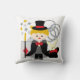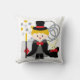 A blonde haired boy magician pillow great for the little magician, features a top hat with a white rabbit, magician's magic wand, rings, stars, and of course, the blonde haired magician!