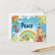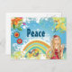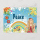Personalised Peace Blonde Hippy Girl with Colourful Flowers, Peace Sign and Rainbow Background Peace Postcard.