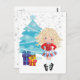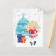 This adorable Irish Dance themed holiday card features a cute blonde Irish dancer in a blue and red solo dress dancing in a winter wonderland complete with snow, a Christmas tree and gifts. Some graphics by MUJKA.
