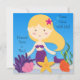 You can easily customise our Blonde Mermaid birthday invitations before ordering with your child's name and party specifics! A cute blonde haired mermaid, starfish, seaweed, and bright blue water make this pretty mermaid theme invite a hit!