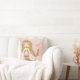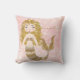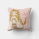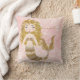 "Blonde Mermaid, Pink and Gold Glitter, Baby Girl Shower script name Throw Pillow." Chic, elegant and fun design with glitter cute Mermaid over a gold sparkling modern shimmer background. Graphically designed by internationally licensed artist, Audrey Jeanne Roberts, copyright.