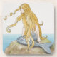 Blonde mermaid sitting on sea rock, side view. coaster