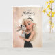 A charming and elegant Mother’s Day greeting card featuring a blonde mother lovingly holding an adorable bunny dressed in a polka-dot outfit. Set against a soft, glowing background with golden sparkles, this sweet illustration captures a tender moment of affection and warmth. A perfect card for celebrating a wonderful mom with a touch of elegance and adorable charm.