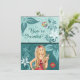 Personalised Peace Blonde Hippy Girl with Flower, Peace Sign and Aqua Flower Background Birthday Party Invitations.