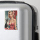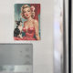 Blonde Pin-Up Pink Dress with Black and White Cat Magnet
