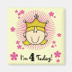 Blonde Princess with crown and pretty pink flowers 4th Birthday Tshirts, mugs, magnets, cards, stickers, and other 4th birthday apparel and gifts.