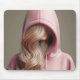 Blonde Teen Girl In a Pink Hoodie Mouse Pad