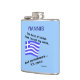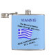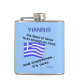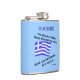 Personalised flask shows a waving Greek flag and reads, "The blood of Hellas flows through my veins. And sometimes...its ouzo." Fun for a laugh on Oxi Day or anytime. Background colour is blue. It can be changed to anything you like. Great gift for papou or dad on Father's Day.
