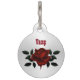 Deep red rose with drops of red. Add pets name on front. Area for three lines of text on back. Contact info and license number