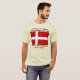Short sleeve men's t-shirt features the flag of Denmark and reads, THE BLOOD OF VIKINGS FLOWS THEOUGH MY VEINS AND SOMETIMES THEIR BEER. Fun and funny t-shirt. Great gift for him.