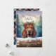 This adorable holiday greeting card features a cute Bloodhound Dog illustration wearing a festive crown wreath of holly, pine, and berries, with snowflakes gently falling against a Rustic Snowy Pine Tree Forest background. The Bloodhound Dog is peeking over the snow-capped log to say hello! The playful text "Jolly Christmas Wishes" adds a warm seasonal greeting, and can be customised as you like. The reverse side is decorated with a classic plaid check, adding a traditional touch to the overall design. This cute, playful card is perfect for sending holiday cheer to family and friends, and the customisable name and date make it a personalised keepsake.