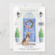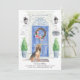 Announce your new address with our stylish announcement featuring a BloodHound, blue front door, welcome mat, slate sign, topiaries and a floral wreath set on a grey brick background.