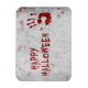 Scary horrific Halloween illustration featuring a bloody handprint and blood splatter on a grungy background.