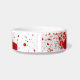 This is a heavy, durable bowl decorated with Tibbies of many colors, the perfect size for hungry/thirsty Tibs. The design is interesting and printing clear.