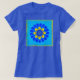 An intricate petaled flower in shades of blue, orange, purple and yellow.