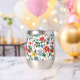 Sip in style with the *Bloom Boldly* stemless wine tumbler. Featuring a lush floral pattern full of vibrant blooms and greenery on a crisp white background, this tumbler brings joy to every pour. Whether you're enjoying a chilled rosé or a sparkling mocktail, this insulated tumbler keeps your drink the perfect temperature—while keeping your vibe bold and beautiful.