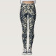 These leggings feature a captivating symmetrical floral pattern set against a deep navy background. The intricate white blooms and star-like motifs create a harmonious design that is both elegant and eye-catching. Perfect for those who appreciate a blend of style and comfort in their activewear. Whether it’s for a yoga session or a casual day out, these leggings offer a snug fit with stretchable fabric that moves with you.