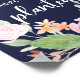 This trendy and beautiful inspirational poster says "bloom where you are planted" in modern white script typography, with a watercolor pink floral wreath on a midnight blue background.