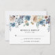 Stylish and elegant floral RSVP cards featuring a top border of white, beige and blue flowers accented by lush greenery. Personalise the design by adding your wedding details. The chic wedding response cards are perfect for spring and summer weddings and were designed to coordinate with our Blooming Beauty wedding collection.