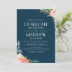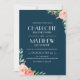Stylish and elegant wedding invitation featuring painted watercolor roses with a navy background. You can customise the background to a colour of your choosing. Select a die-cut shape or textured paper for an extra luxurious touch. Mix and match elements from this collection for a seamless and elegant invitation set.