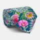 This is a pattern of colourful watercolor tropical flowering cacti and succulents on a ocean blue background.
