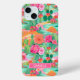 Customize this colorful watercolor iPhone 15 plus case featuring cacti with beautiful blooms in pinks and oranges with your name in a modern CAP font in white on pink. It's so modern and trendy!