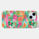 Customize this colorful watercolor iPhone 15 case featuring cacti with beautiful blooms in pinks and oranges with your name in a modern CAP font in white on pink. It's so modern and trendy!