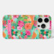Customize this colorful watercolor iPhone 15 pro case featuring cacti with beautiful blooms in pinks and oranges with your name in a modern CAP font in white on pink. It's so modern and trendy!