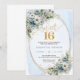 Blooming Dusty Blue Floral Sweet Sixteen Birthday Invitation