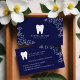Elegant and regal dental tooth tree logo business card design. We've designed this beautiful dental tooth logo. A modern dental tooth shape with flourishing tree branches & foliage designed within the white space of the dental tooth shape. Beautiful leaves and floral foliage frame the edge of the business card with a navy blue background. Customise with your company name and tagline. The reverse side is designed in a clean and minimal style with our leaves and floral foliage framing the edge of the business card. You can customise the text size, font, colours and background colour to suit your own personal preference. All illustrations and logo contained in our dental tooth business card design are hand-drawn original artwork by Moodthology.