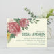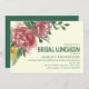 This Blooming Flowers Bridal Luncheon invitation features green leaves with yellow, blue and reddish purple flowers and the word "Bridal Luncheon" in a vintage style typography in green all against a light yellow background. This invitation also includes a matching solid green back side.