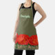This personalised apron is a perfect blend of vintage charm and modern style, ideal for gardening enthusiasts. The top two-thirds of the apron features a sleek background in the hue of olive (#6A6A45), creating a striking contrast for the elegant script font, where you can personalise the apron with your own name—making it uniquely yours. The bottom third bursts into life with a trio of vibrant red-orange geraniums, standing gracefully and adding a warm, nostalgic touch to the overall design.It’s both functional and a beautiful homage to timeless style, ready to accompany you through summer days in the garden.