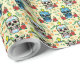 Celebrate the spirit of Dia de los Muertos with our vibrant Halloween wrapping paper featuring a seamless, festive pattern. Decorated sugar skulls in vivid blue and colourful designs alternate with lush red roses, set against a warm pale yellow background. Delicately sprinkled yellow flowers and green foliage add a whimsical touch, making this wrapping paper perfect for Halloween and Día de los Muertos celebrations. Bright, joyful, and uniquely themed—ideal for gifting with a spirited flair.