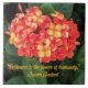In the original photograph by ZoeSPEAK on this 6” Ceramic Tile, we see a closeup of a flowering ixora bush, with beautiful orange and yellow flower petals to brighten the day. On the background of green leaves is a quote from Joseph Joubert, “Politeness is the flower of humanity.”, a lovely thought to remember.