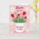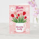 The front design shows a white ceramic mug holding a full bouquet of stylised tulips, arranged like a caring gift set out for someone special ❤️. Red tulips mix with softer pink blooms that have gentle stripes, and the green stems and leaves fan outward in a neat, affectionate cluster. The background is pastel pink, sprinkled with small white daisy shapes and dotted accents that add a light, friendly texture. Near the top, a short message of appreciation appears in a deeper pink, centred and easy to spot. A second line of text sits on the mug itself in the same deeper pink, as if the mug is speaking a sweet compliment. The overall layout feels like a quiet thank-you shared between close friends or family, like a warm glance across the table 🌼. The tulips rise above the mug in layered petals, with the white daisy motifs scattered around them on the pink backdrop.