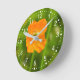 Blooming Orange Poppy Flower Photo On Green Round Clock