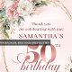 Blooming Rose Gold Blush Floral 50th Birthday Thank You Card