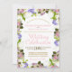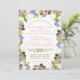This elegant floral wedding invitation features gold and pink text surrounded by a bounty of spring flowers in pastel colours. The radiant blooms include pink roses, lavender hydrangea, and white orchids & calla lilies. Perfect for a spring or summer wedding.