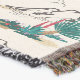 A quality printed throw has its advantages. This is a much finer weave throw than its loopier cousins, and though lighter, it is worth the investment for custom room accessorizing. The back is much prettier than the typical brown, and the fringe on the long sides very vivid, the selvage nicely done. Before photographing, I washed the throw in cold water, delicate, with a thicker woven throw the same size. On tumble dry low, this throw was dry in half the time as the other. This is a very practical quality if you use throws for furniture covers or to wrap up in frequently. The sleekness of the fabric makes it a great layer for accenting or protecting without the feeling of sitting on too much stuff. Perfect for napping or when you feel a light chill coming on. The color printing is beautiful and on this fabric, matched the design and color of my Photoshop image. This is an advantage for blending room fabrics and colors. The fringe on the short sides prints the colors from the design image and therefore varies from the side fringe. I streaked a white fractal line through the plaid pattern to give the illusion of weaving. This printed as crisp as an illusory thread, and put some white in the short side fringe, showing another advantage of print vs loomed- for artistic purposes, line lines, detail, and color integrity can be planned and preserved. My loomed throws have color limitations and more of a needlepoint texture. Print throws reproduce an exact image. The throw felt a little stiff straight out of the package, but this went away in the first delicate wash. Of course I searched the wash water for ink or bleeding and there was none.