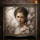 Ethereal portrait with cherry blossoms. Transform furniture with romantic art. Perfect for elegant spaces.