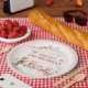 Add sweetness to your table with this paper plate featuring a cat and bird tea party.